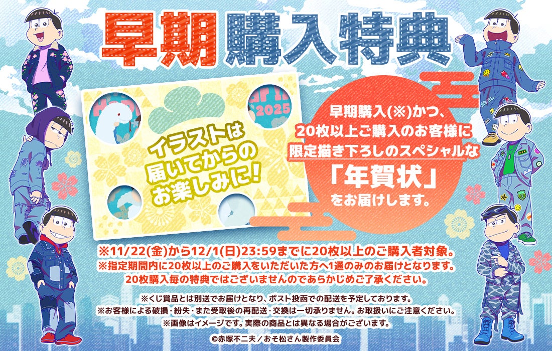 さらに今回は、早期購入特典として2024年12月1日(日)23:59までに合計20枚以上ご購入の方には限定描き下ろしのスペシャルな年賀状をお届けいたします。