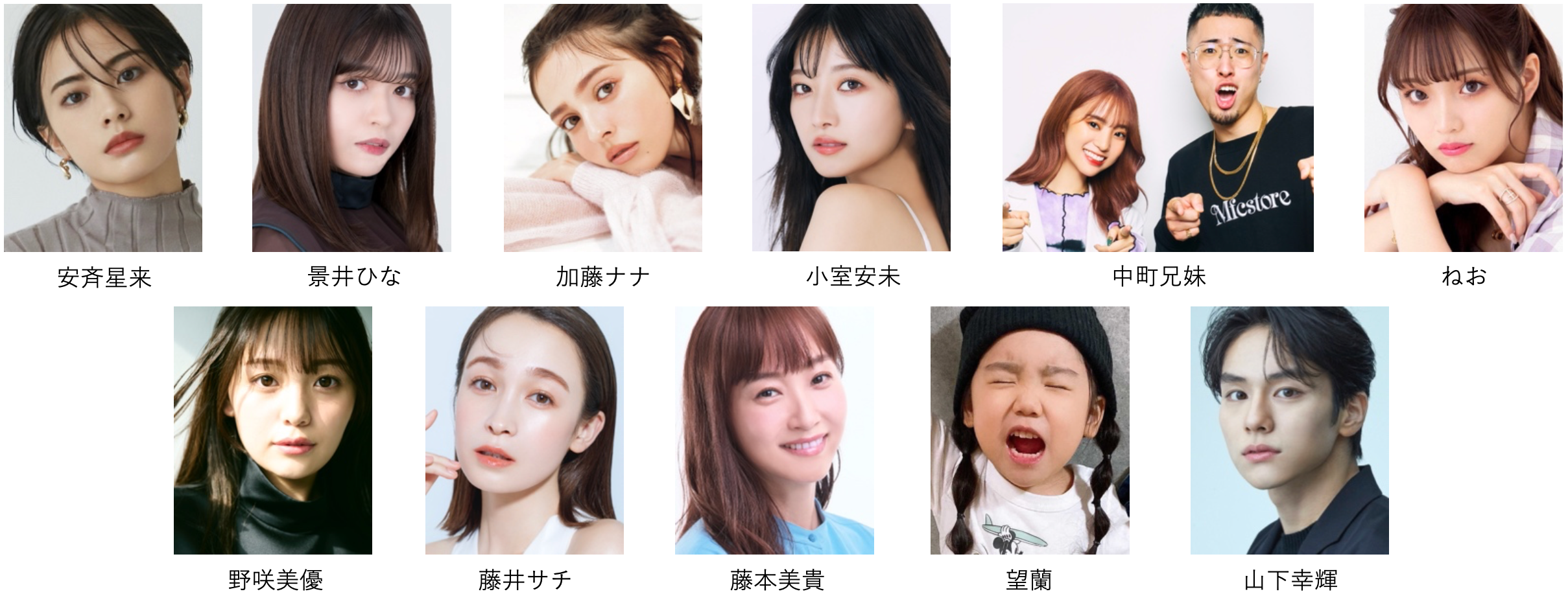 出演者:iScream、安斉星来、EXILE TETSUYA、ORβIT、景井ひな、加藤ナナ、小室安未、小森隼(GENERATIONS)、清水美依紗、中務裕太(GENERATIONS)、中町兄妹、ねお、野咲美優、藤井サチ、藤本美貴、ミキ、望蘭、山崎怜奈、山下幸輝 他 ※50音順