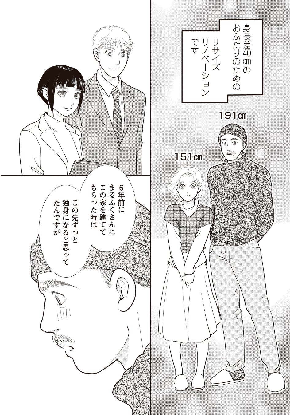 互いの気持ちをうっすら感じ取りながらも、なんだか微妙な空気感の小梅と玄之介。そんな二人が取り組むのは、身長差40㎝カップルのリサイズリノベ。依頼主の男性は「すべて彼女に合わせる形で大丈夫」と申し出るも、女性側は納得していない様子…?