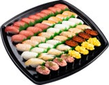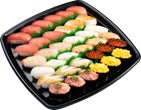 中とろやとろサーモン、ねぎとろ軍艦など、お子さまから大人まで楽しめる11種類の人気ネタを詰め合わせました。中とろが、1人前につき二貫お楽しみいただけるちょっと贅沢なお持ち帰りセットです。