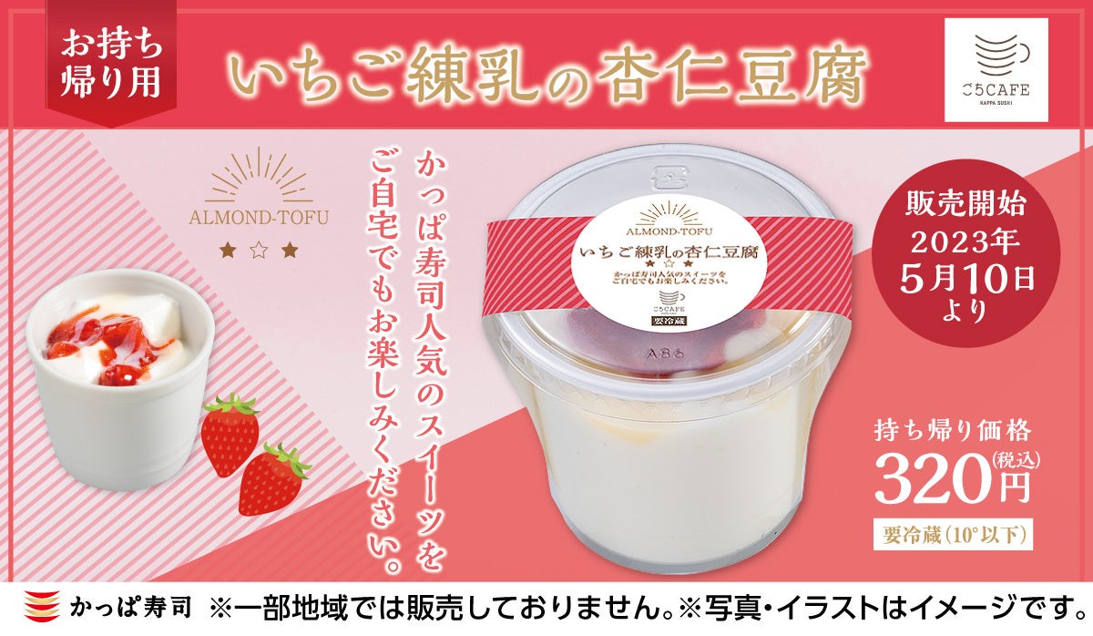 また、かっぱ寿司のスイーツブランド「ごちCAFE」より、お持ち帰りスイーツ『いちご練乳の杏仁豆腐』を本日5月10日(水)より発売いたします。