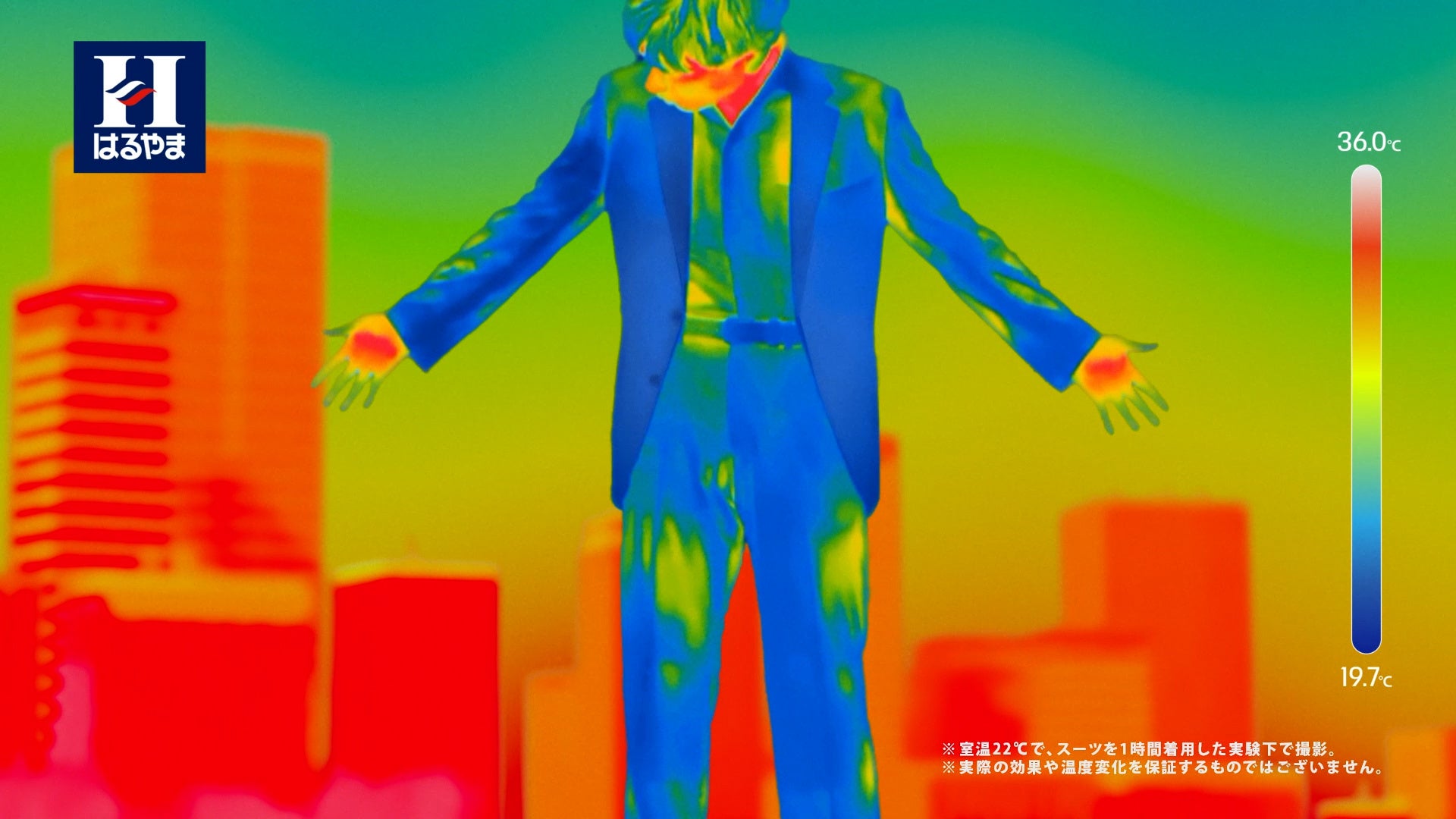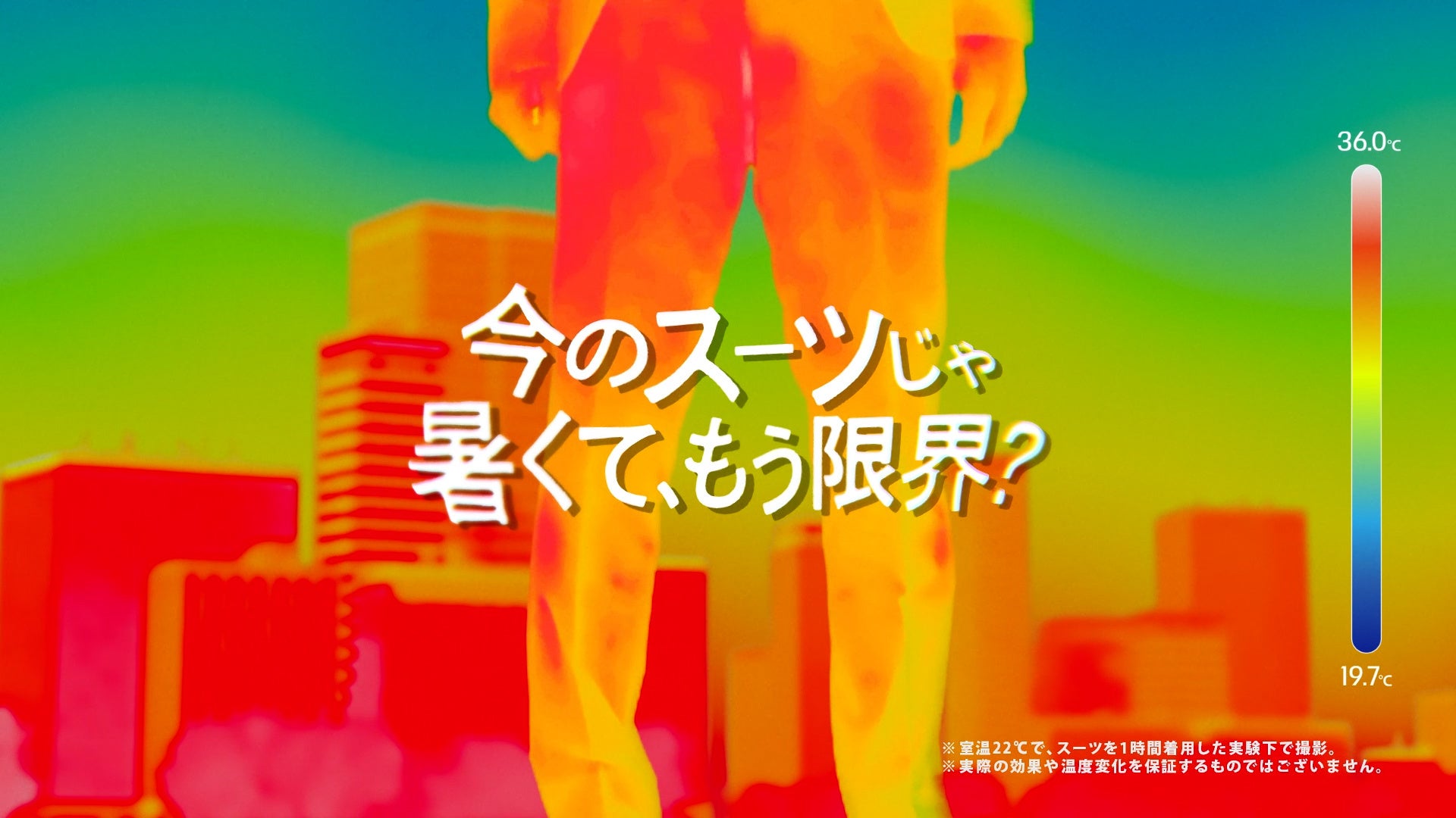 「サーモグラフィー」篇は、サーモグラフィーを使用した演出により、暑さから涼しさへの変化をビジュアルで訴求しています。