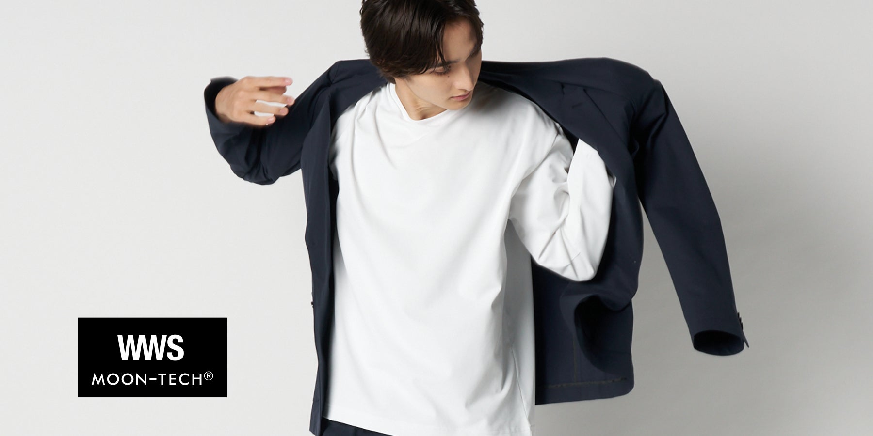 両商品には、汗ジミ防止・吸汗速乾・消臭・防汚・抗菌・皮脂除去など12個もの高い機能を搭載した「過剰なほどの機能性」を持つ「MOON-TECH®」を使用。秋冬の衣服に対する悩みに徹底的に向き合います。デザイン面では、袖をリブ仕様ではなく切りっぱなし仕様にし、ビジネスからカジュアルまで着用可能。首回りも、若干ワイドで爽やかな抜け感を醸し出しつつルーズにならない絶妙なバランスに設計。着丈は1枚でもおしゃれに、ジャケットと合わせてもだらしなく見えない頃合いの良い丈感に仕上げております。2025年11月14日(金)13:00からWWS公式オンラインストア、WWS直営6店舗・MOONRAKERS公式オンラインストアにて一般販売を開始いたします。