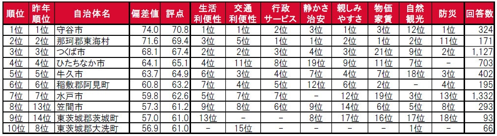 - 街の住みここちランキング2022<茨城県版>自治体TOP10 因子別順位