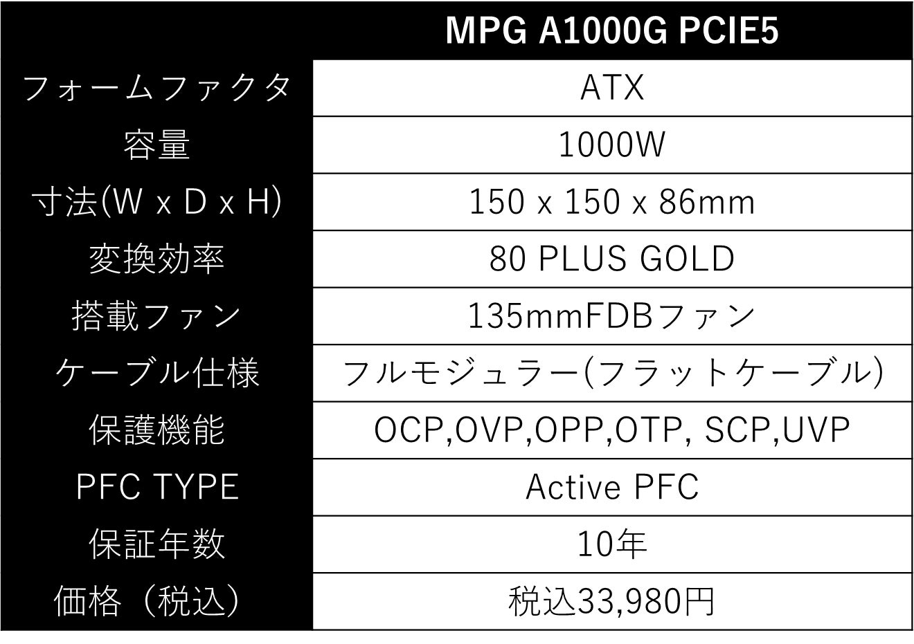 製品URL:https://jp.msi.com/Power-Supply/MPG-A1000G-PCIE5