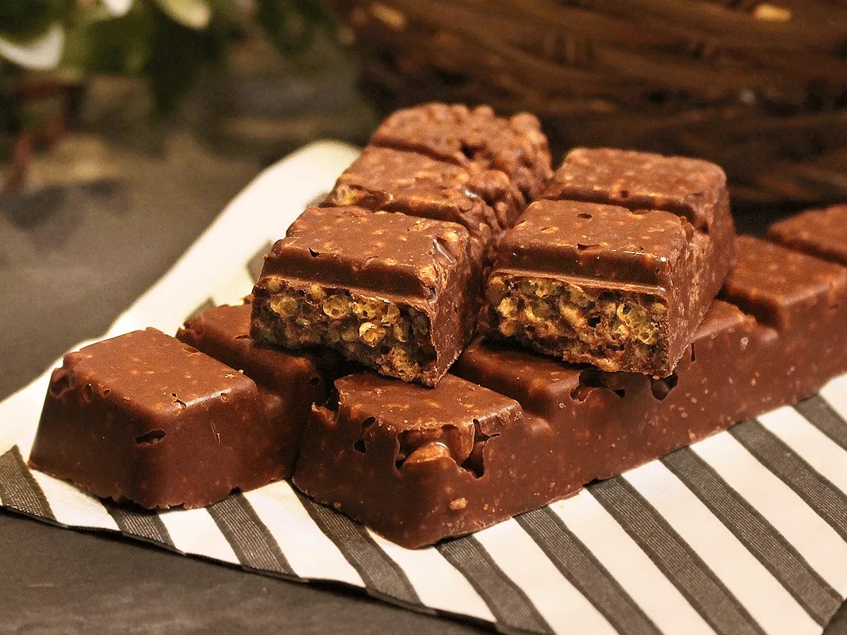食べ応えのあるザクザク食感と、自然な甘みが楽しめるプロテイン入りのチョコレートバーです。 いつでもどこでも手軽に召し上がっていただけます。