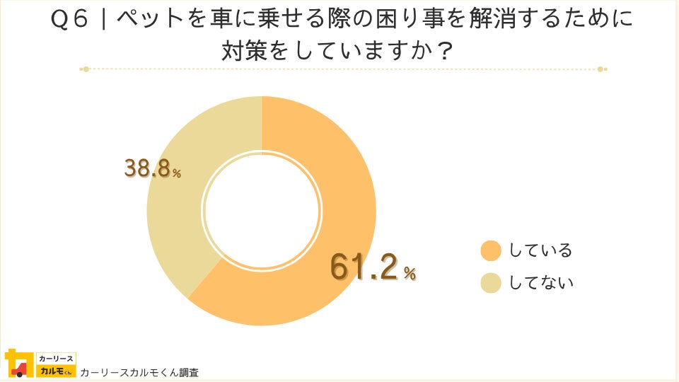 Q5でペットを車に乗せる際に困り事が「ある」と回答した方に、何かしらの対策を講じているか聞いたところ、半数以上となる61.2%の方が「している」と回答しました。