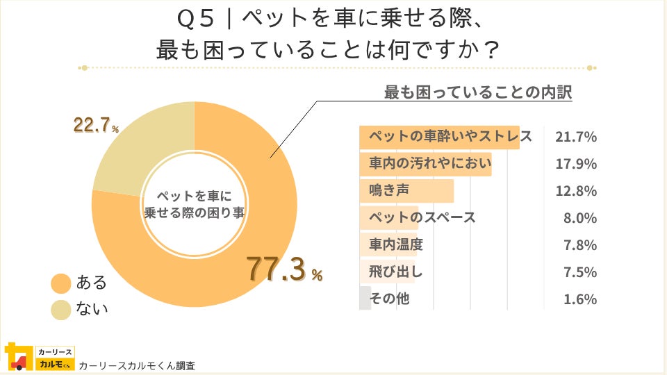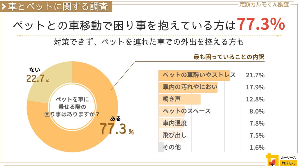 【車とペットに関する調査】ペットとの車移動で困り事を抱えている方は77.3%