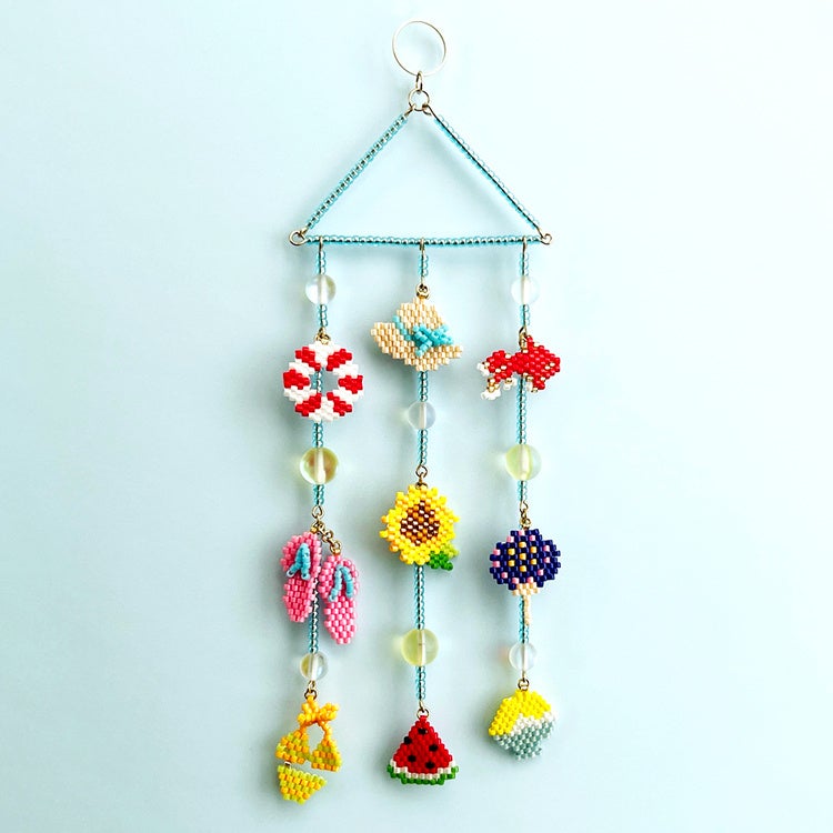 ビーズステッチで作る夏モチーフがゆらゆら揺れるつるし飾りのキットです。