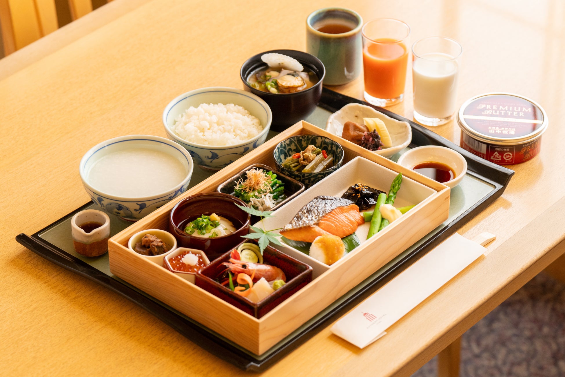 ホテル契約農家で栽培した蘭越産「ななつぼし」をふっくら炊き上げ、北海道産いくらやマグロ、帆立などの新鮮な魚介類を盛り合わせた、入舟特製の海鮮丼です。朝を贅沢な気分でお迎えください。