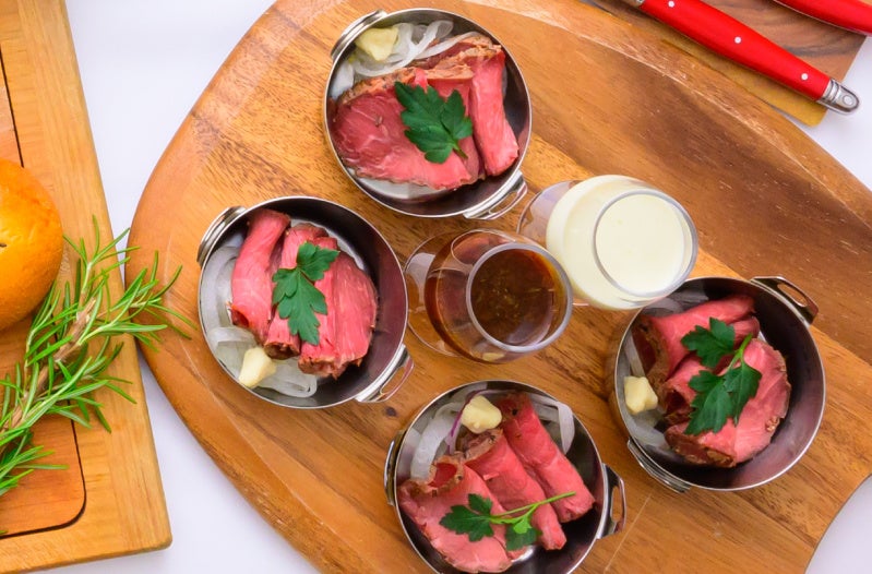北海道産牛肉で作ったローストビーフは、赤身が多く脂肪が少ない肉を選定し、しっとりと仕上げました。きめ細かな歯ごたえと、噛むほどに広がる肉の旨味をお愉しみいただけます。