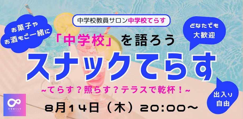 【8月14日(木)緊急開催 】中学校を語ろう~スナックてらす~ てらす?照らす?テラスで乾杯!