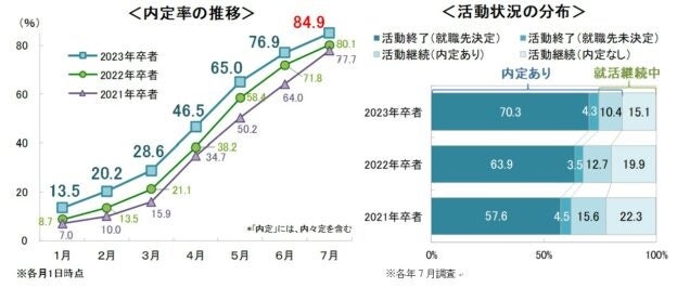 内定率は84.9%。前年同期実績(80.1%)を4.8ポイント上回る