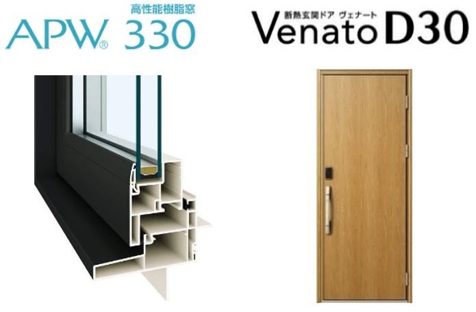 窓は、アルミサッシ+単板ガラス窓から、高い断熱性能の高性能樹脂窓「APW 330」に交換。玄関は断熱玄関ドア「ヴェナート D30」D4仕様の顔認証キーを採用しています。
