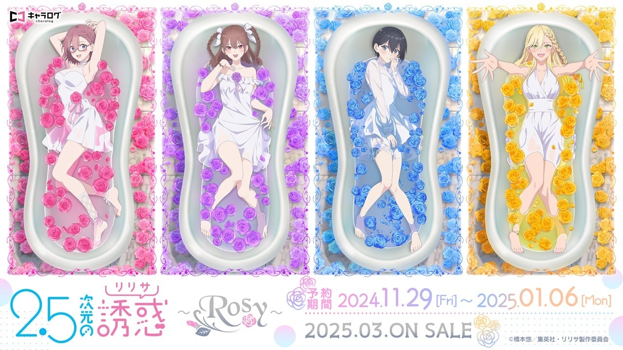 TVアニメ「2.5次元の誘惑」より、バラ×バスタブ×白ワンピースの描き下ろしイラストを使用したオリジナルグッズが登場!