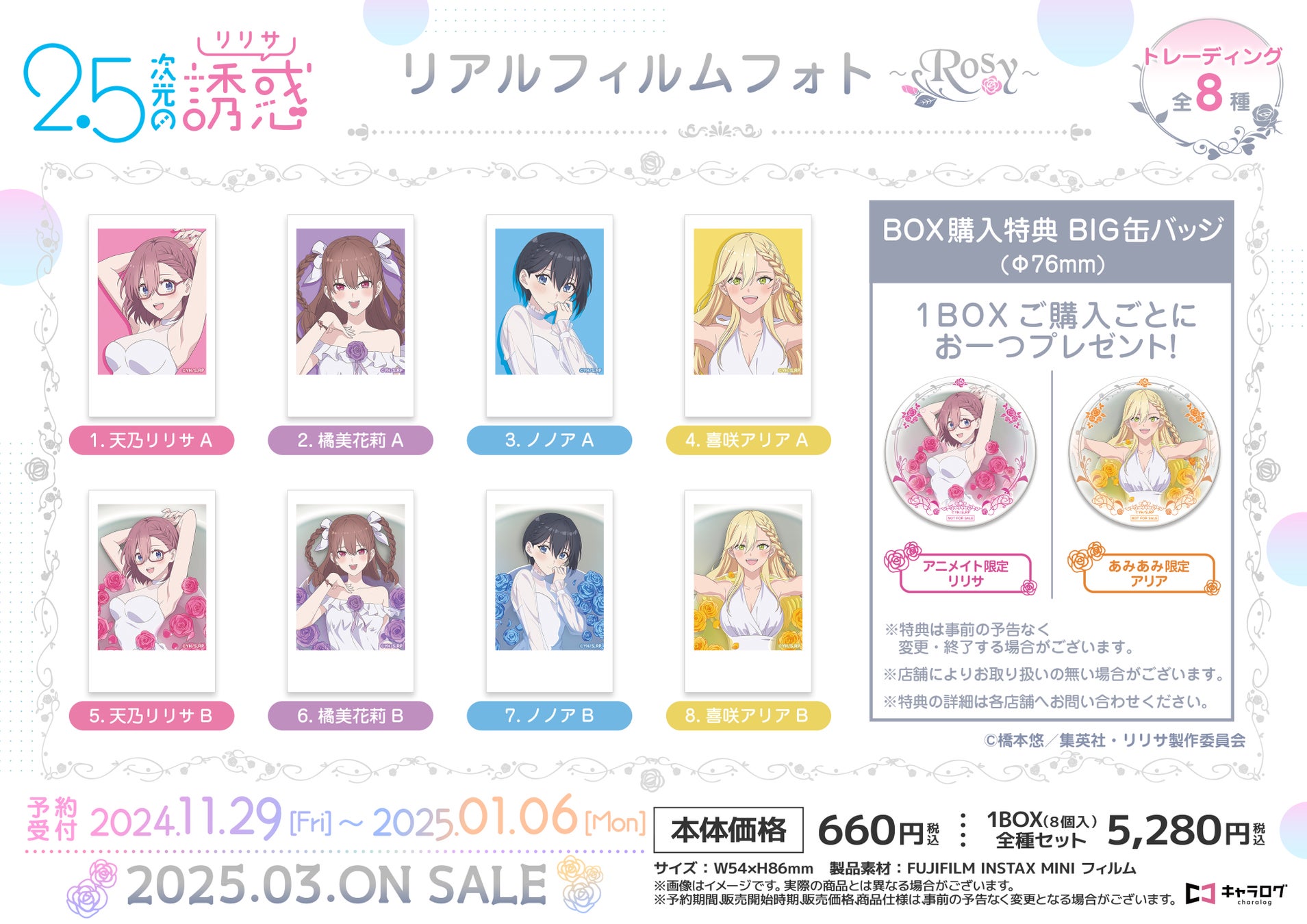 TV アニメ『2.5 次元の誘惑(リリサ)』は、2 次元のキャラクター・リリエルを愛する平凡な男子高校生・奥村正宗が、リリエルを愛し「リリエルになりたい」という新入生・天乃リリサと出会うことから始まります。 彼女の頼みでコスプレの撮影に協力することになった奥村。リリサと活動をともにするにつれ感じたコスプレイヤーたちの情熱やそれぞれが抱える想い、様々な苦難を乗り越え成長していく姿を描く、リアル(3次元)とフィクション(2次元)が交差する熱血青春コスプレ作品です。