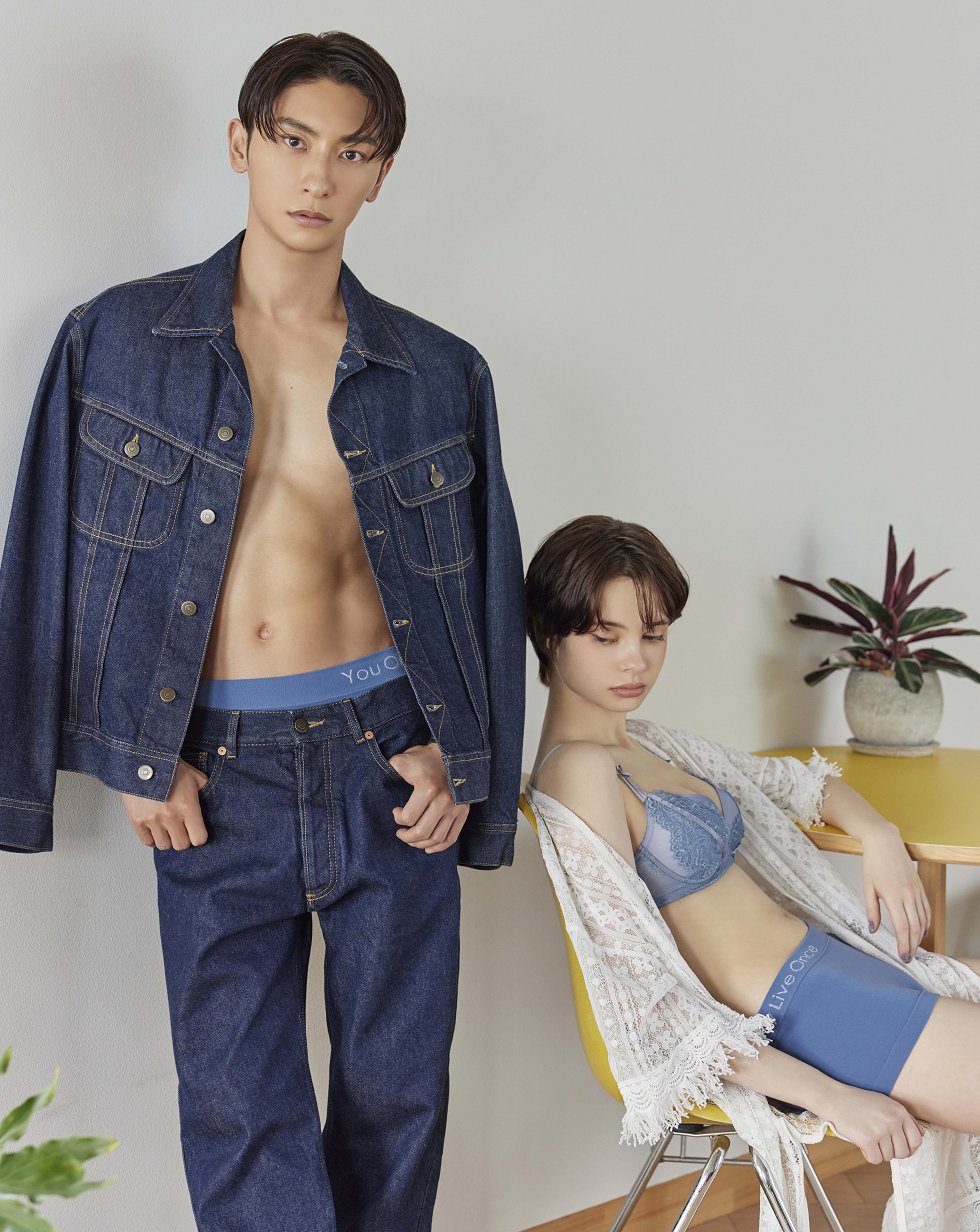 コラボレーションしたブラジャーは、累計販売枚数429万枚(※)を突破した、人気ノンワイヤーブラの[BRAGENIC](ブラジェニック)の機能を採用。テープやレースを組み合わせたトレンド感のあるデザインです。さらに、ひとつひとつのカラーリングにも與さんのこだわりを詰め込み、その日の気分に合わせて選んでいただけるようなカラー展開となっています。また、[BRAGENIC]では初めて男女ペアで楽しめるパンツを発売。ウエスト部分の「You Only Live Once」(人生は一度きり)というポジティブに頑張る人を応援するメッセージがポイントです。