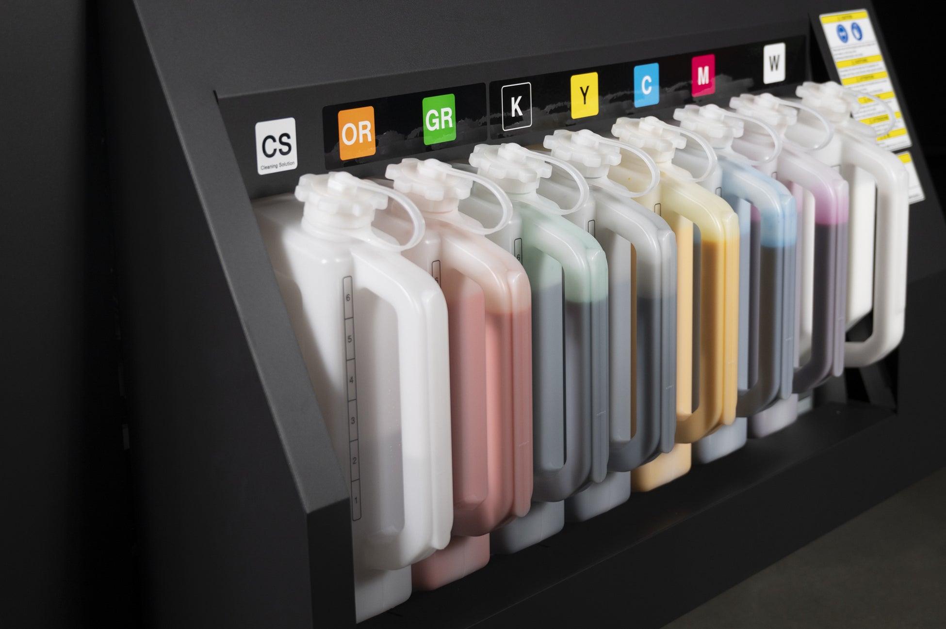 シアン、マゼンタ、イエロー、ブラック、ホワイトの5色に、新たにオレンジとグリーンを加えた7色のインクを搭載することで、従来では再現できなかった鮮やかなカラー表現を実現した。