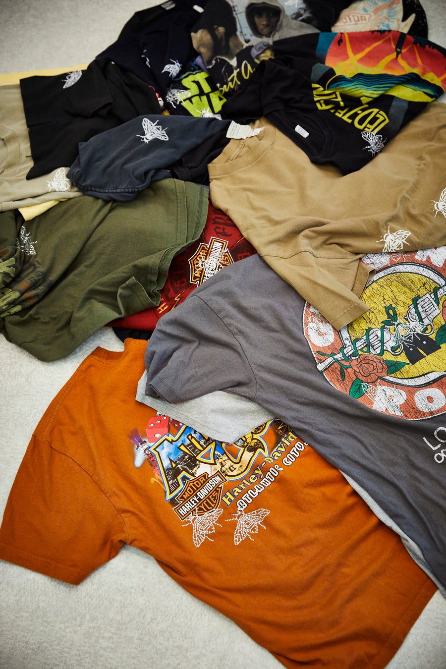 ビンテージのハーレーダビッドソンや往年のバンドTをベースに、PRINCIPE prive(プリンチペ プリヴェ)」のアイコンである蜂のモチーフをラインストーンやハンドプリントで表現しています。