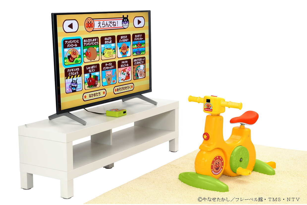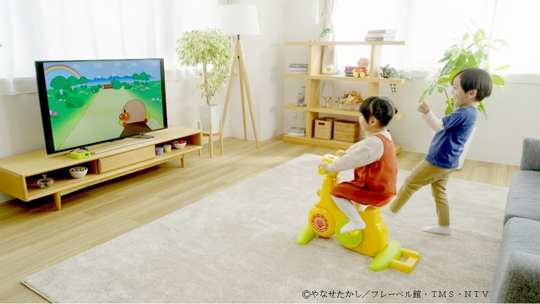 寒さや日照時間の短さ、居住環境の制約で外遊びがさらに難しくなる冬が到来しました。本日発売の『運動・知育・遊びもいっぱい!GoGo!アンパンマンサイクリング』は、天候や時間に左右されず、国が推進する「日常生活の中での身体活動の増加」に合致した、テレビ連動型サイクリングトイです。ペダルを漕ぐ動きに合わせてテレビ画面のアニメーションが連動し、全12メニューの運動・知育遊びを楽しめます。ペダルを漕いだ分だけキャラクターが前に進む仕組みで、お子様の「やりたい・続けたい」を自然に引き出します。テレビに接続しない時でも本体から音が出る「サウンドプレイモード」も搭載しているので、いつでも好きな時に乗って運動することも可能な商品です。