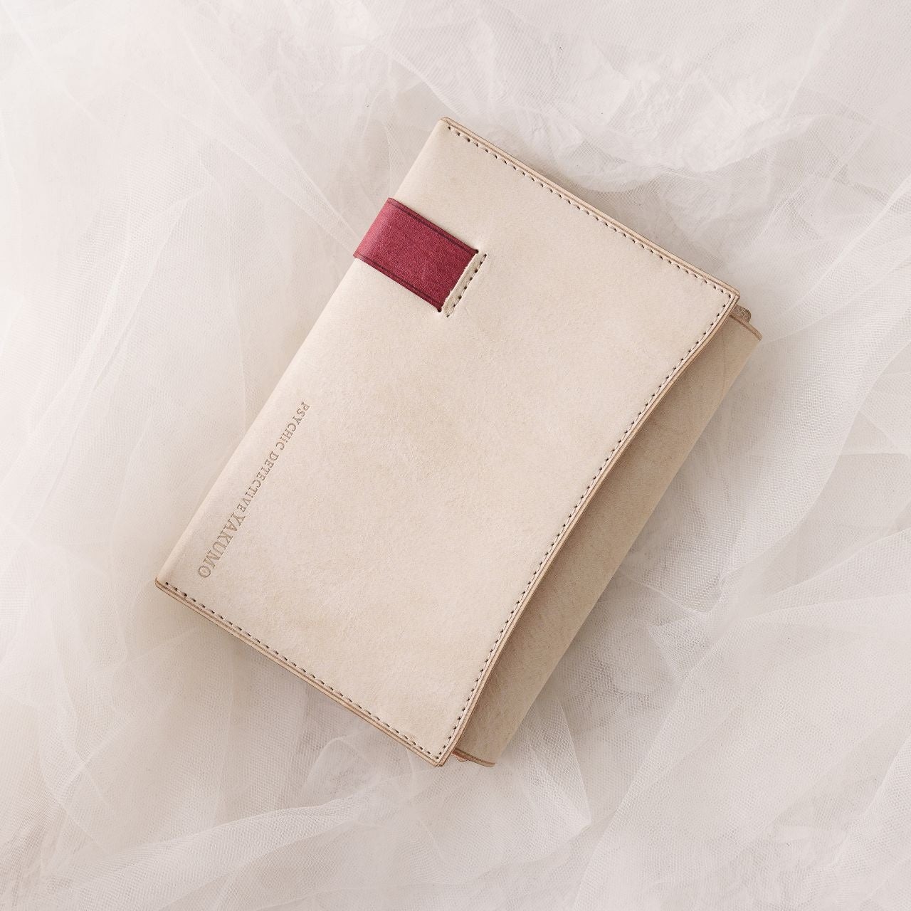 2004年、『心霊探偵八雲 赤い瞳は知っている』でデビューした神永氏の代表作「心霊探偵八雲」シリーズ。その主人公・斉藤八雲の象徴である“赤い左眼”をモチーフに、神永氏監修のもとUNROOFの職人がデザインした本革ブックカバーが誕生しました。