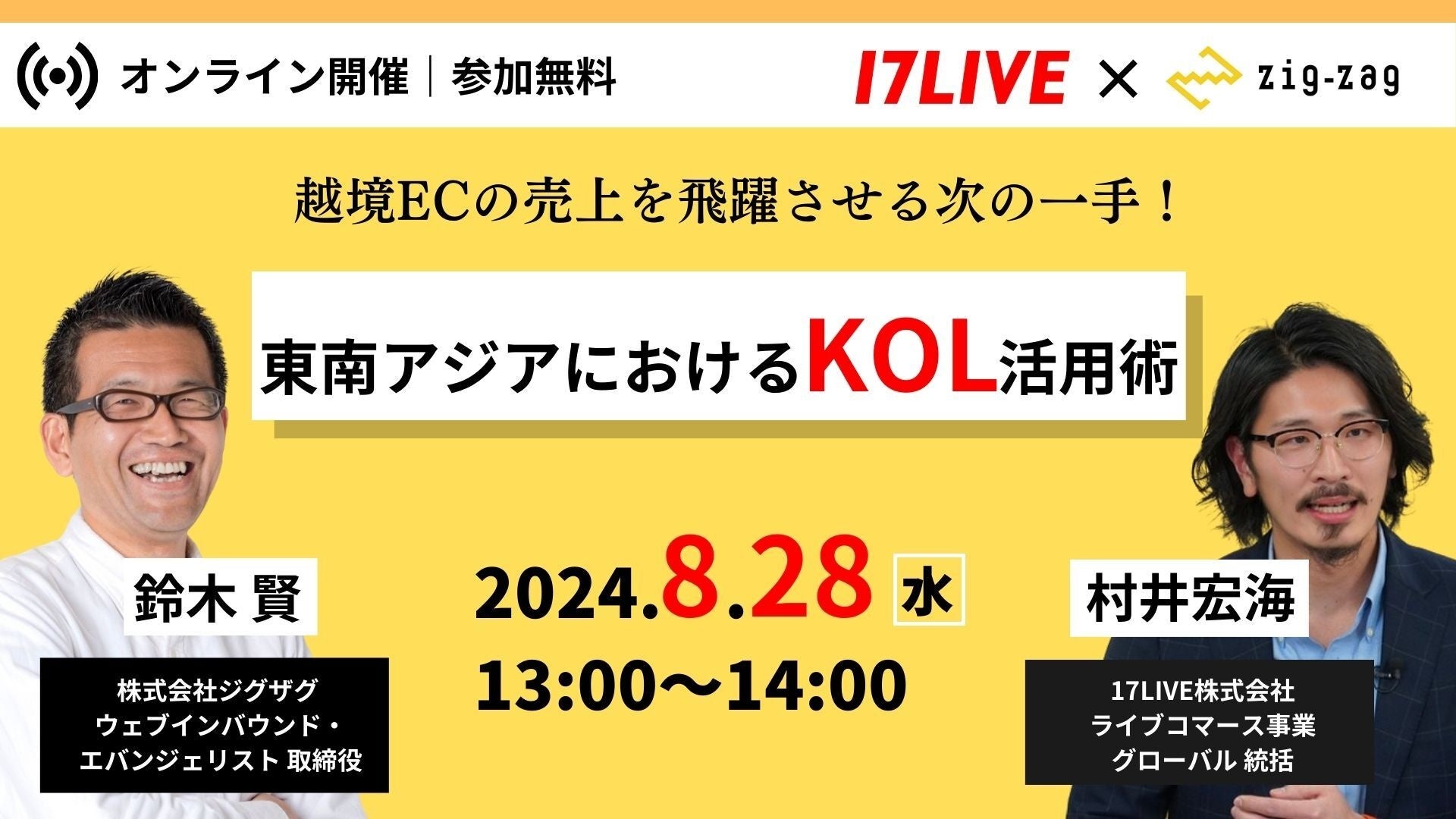 今回の連携は、日本および台湾においてライブ配信業界のリーディングプラットフォームである「17LIVE」と、国内ECサイトの海外販売を支援するEX対応サービス「WorldShopping BIZ(ワールドショッピングビズ)」を主力事業に掲げるジグザグとの間で、日本の商品を海外の視聴者に紹介する「越境EC」分野に関するサービスの連携・強化を目的としたものです。