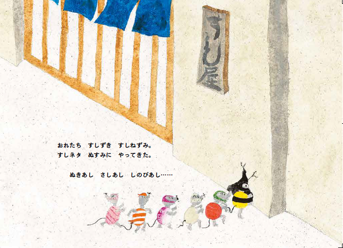 この「すしねずみ」たちは、2019年に刊行された絵本『みんなのおすし』(第11回ようちえん絵本大賞 理事長賞受賞、第30回けんぶち絵本の里大賞アルパカ受賞)にも登場したキャラクターです。