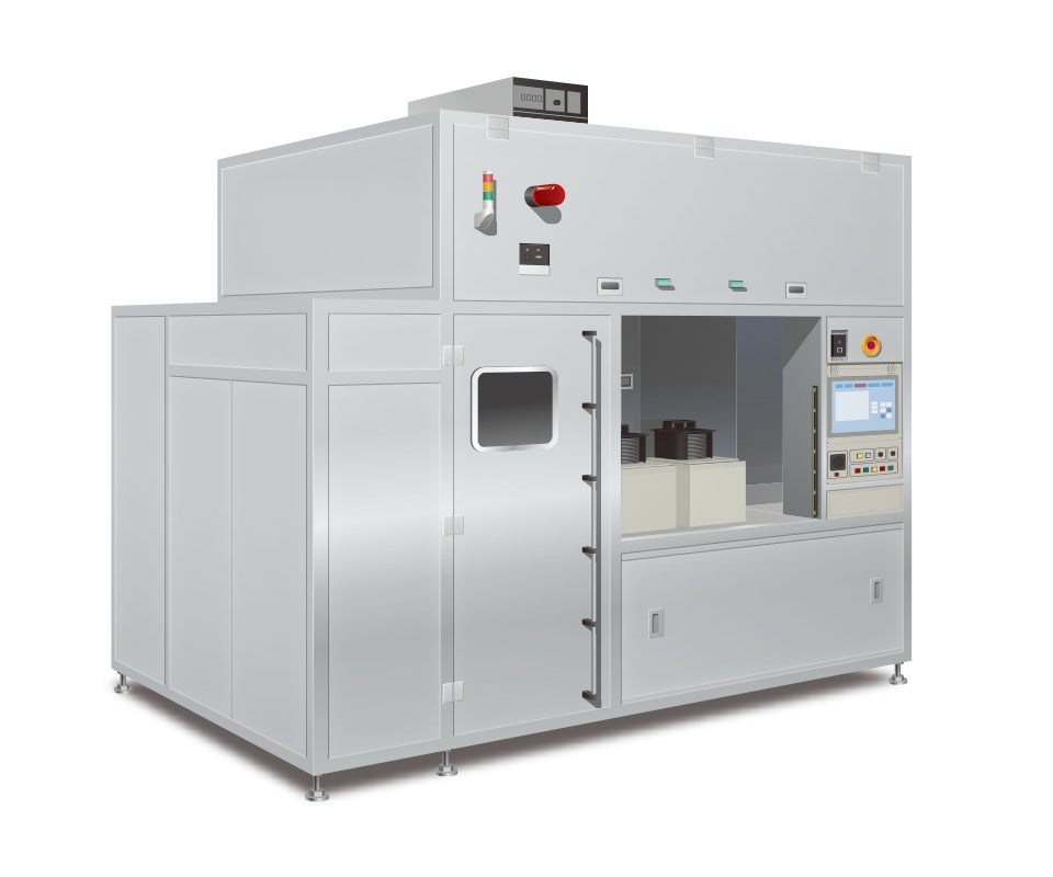 ウエハーの保管や輸送で使われる密閉容器であるFOUPを洗浄する装置です。独自の洗浄処理で、FOUP内に残る不要物やパーティクルの洗浄が可能です。更に、瞬間加熱式の採用で頑固な接着剤や粒子を迅速に洗浄可能であり、高い洗浄能力を有しています。また洗浄液は純水のみで使用量も少ないため、環境負荷低減に繋がります。FOUPの ボックスと蓋を別エリアにて洗浄・真空プロセスにかけることも可能です。