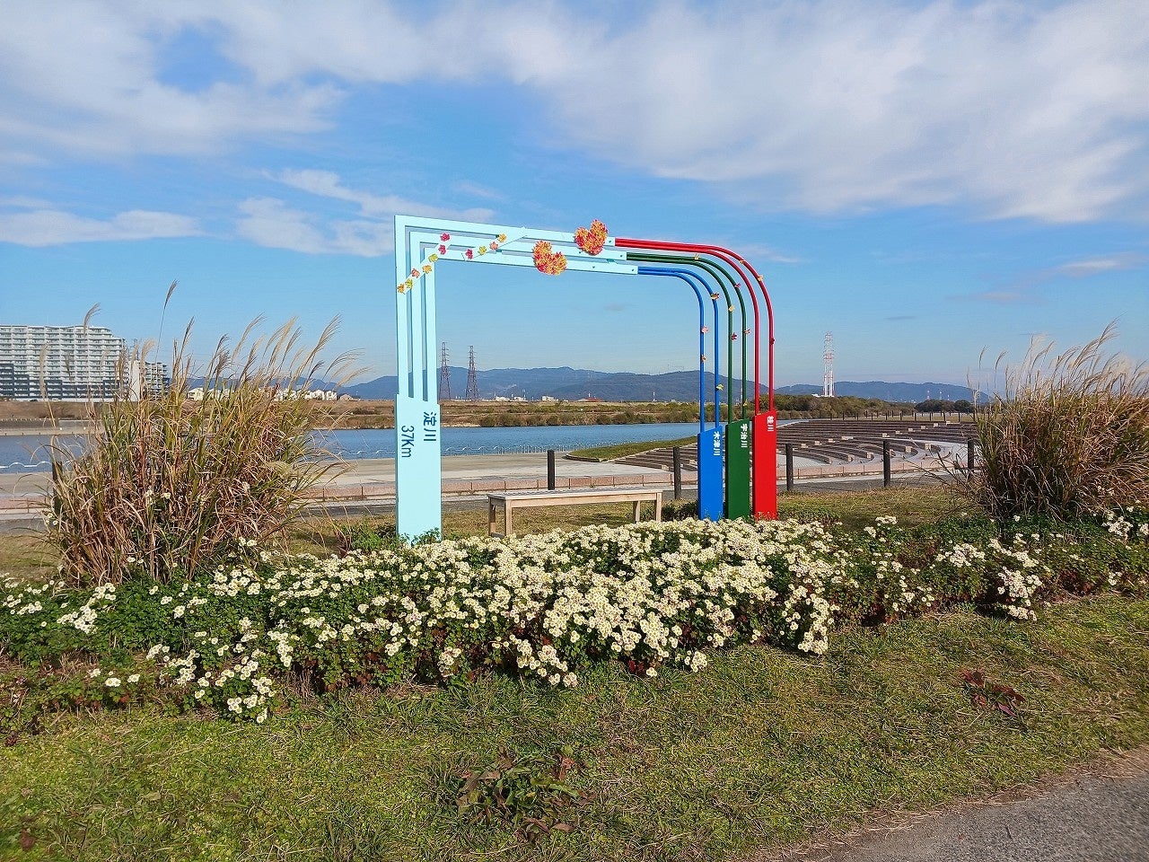 枚方市の花"キク"のフォトスポット期間限定で登場!(淀川河川公園)