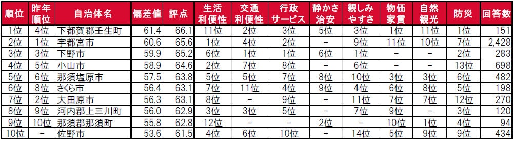 - 街の住みここちランキング2022<栃木県版>自治体TOP10 因子別順位