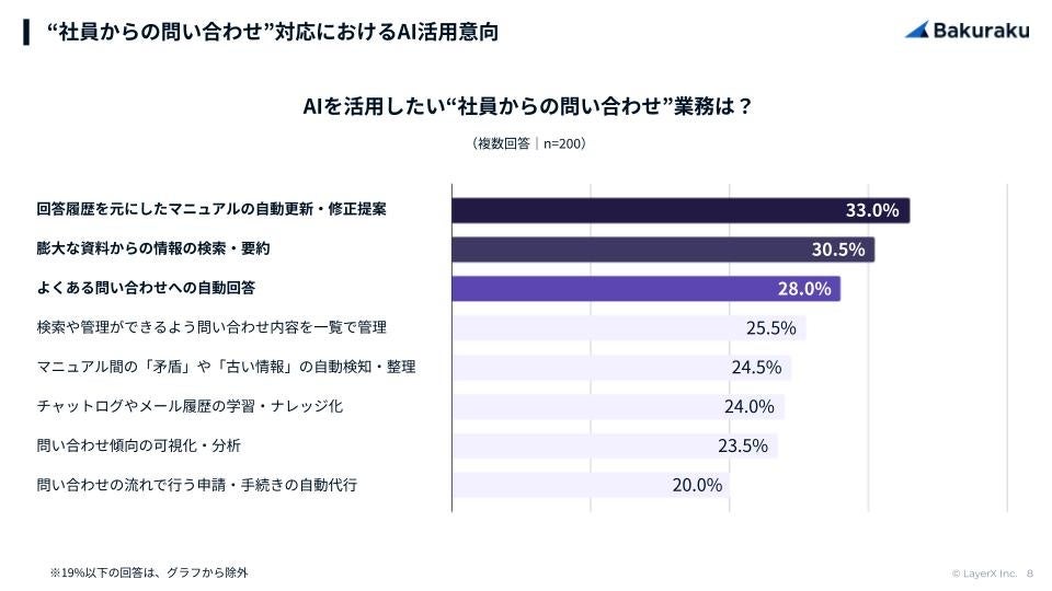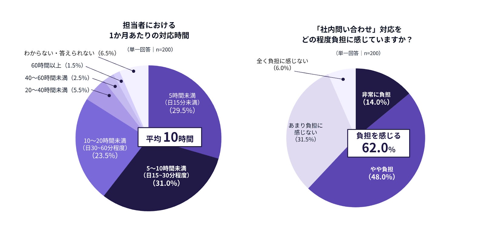 LayerXが実施した調査(2026年2月、n=200)では、バックオフィス担当者の62.0%が社内問い合わせ対応を「負担」と感じており、対応工数は月平均10時間に上ることが分かりました。