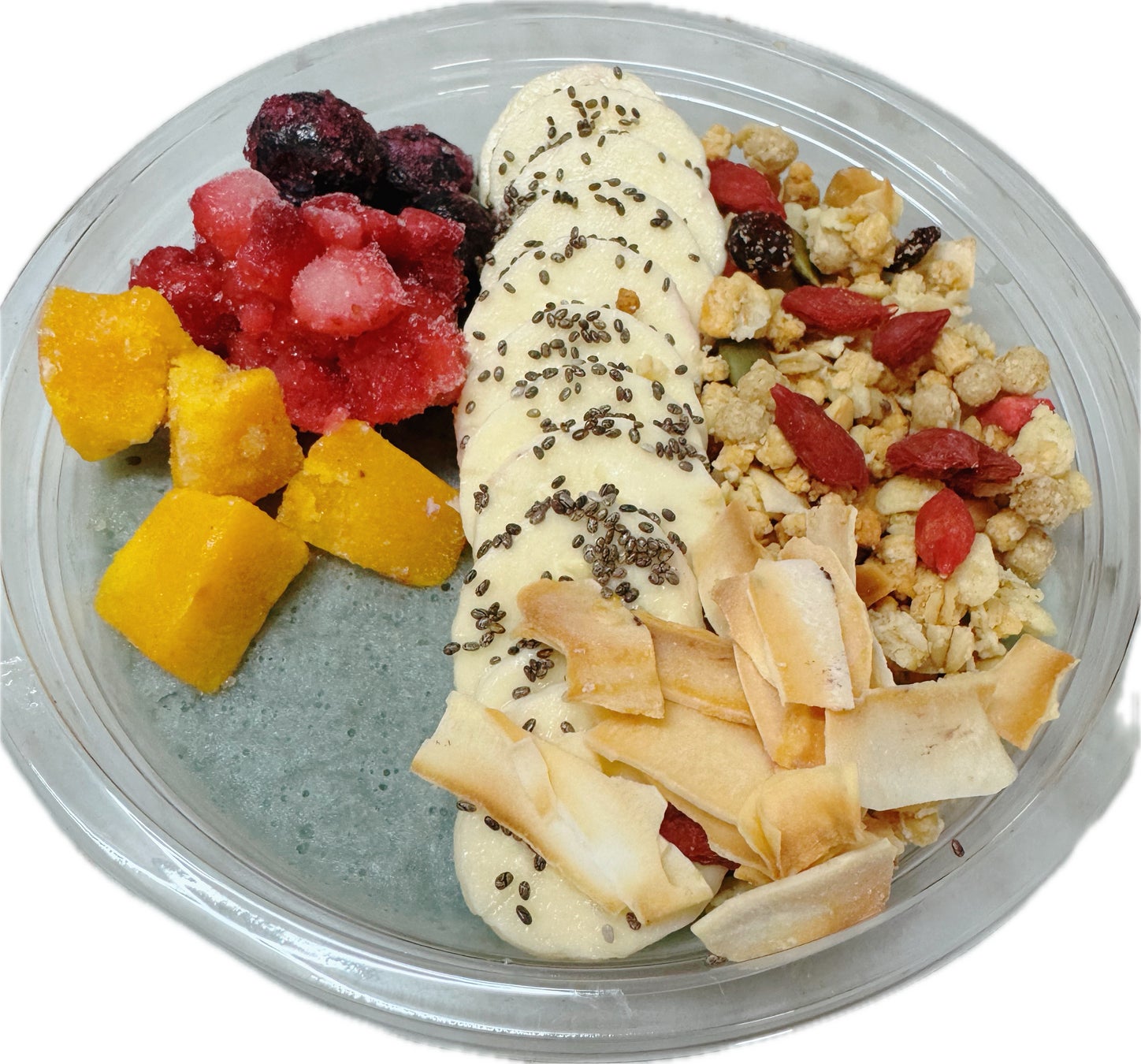 天然のブルーで作るフルーツボウル。フルーティーで爽やかな味わいです。