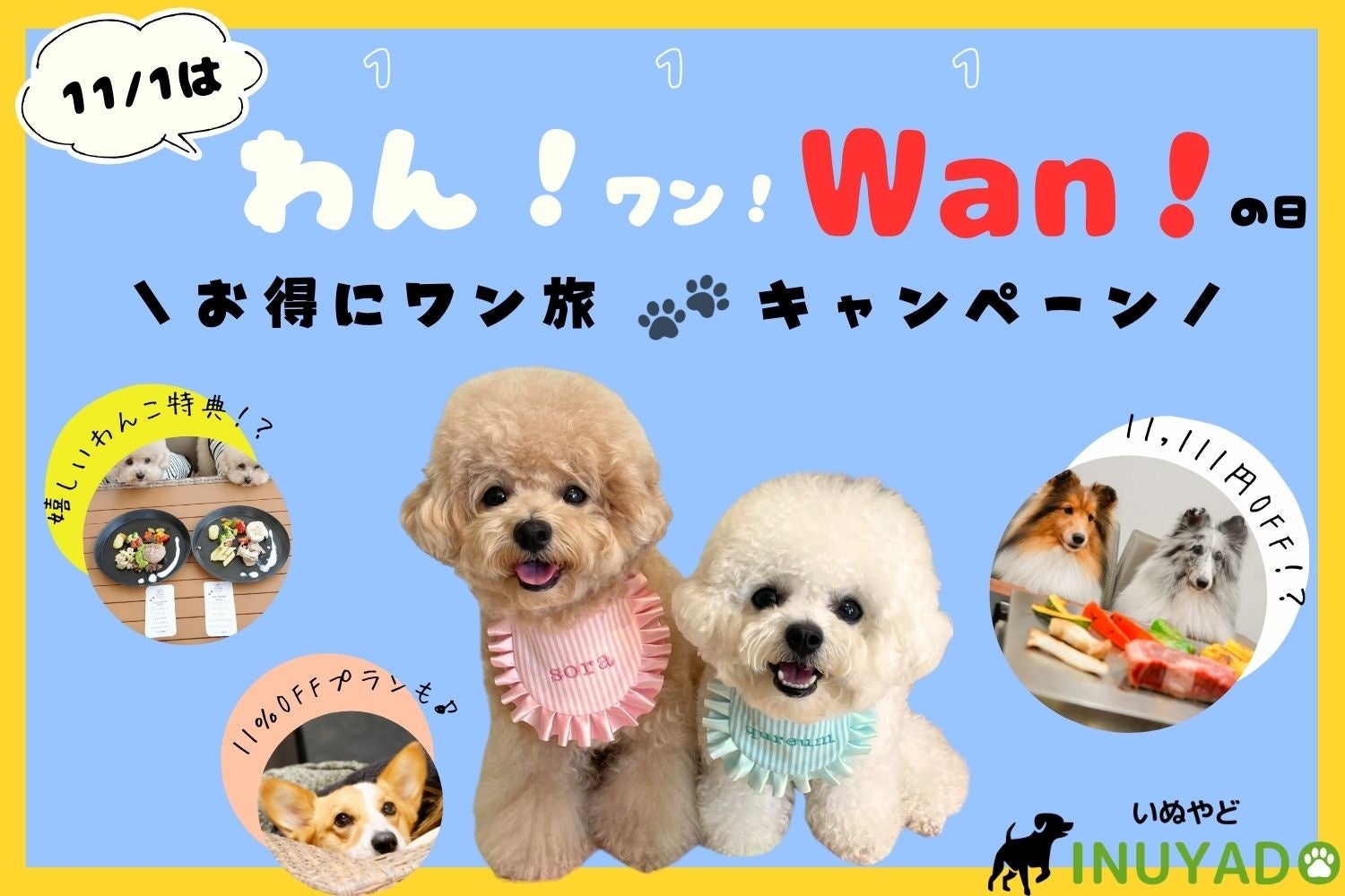 株式会社ブッキングリゾート(代表取締役 坂根 正生、本社:大阪市北区)が運営する、ペットと泊まれる宿泊予約サイト「いぬやど-inuyado-」では、11月1日より「わん・ワン・Wanの日」キャンペーンを開始しました。