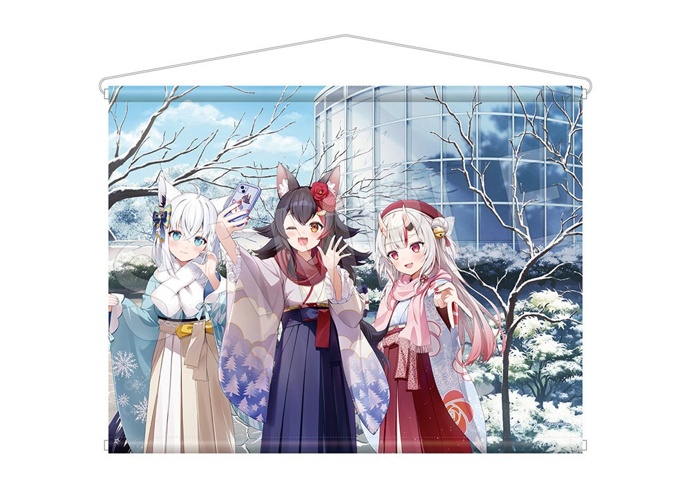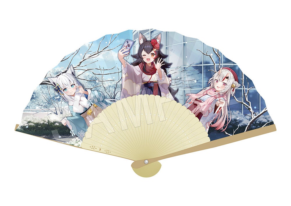 ⼥性VTuberグループ「ホロライブ」所属の「白上フブキ」「百鬼あやめ」「大神ミオ」の描き下ろしイラストを使用した「扇子」や、木製の「銭湯鍵風キーホルダー」など「和」な温泉ならではの限定オリジナルグッズが登場します。