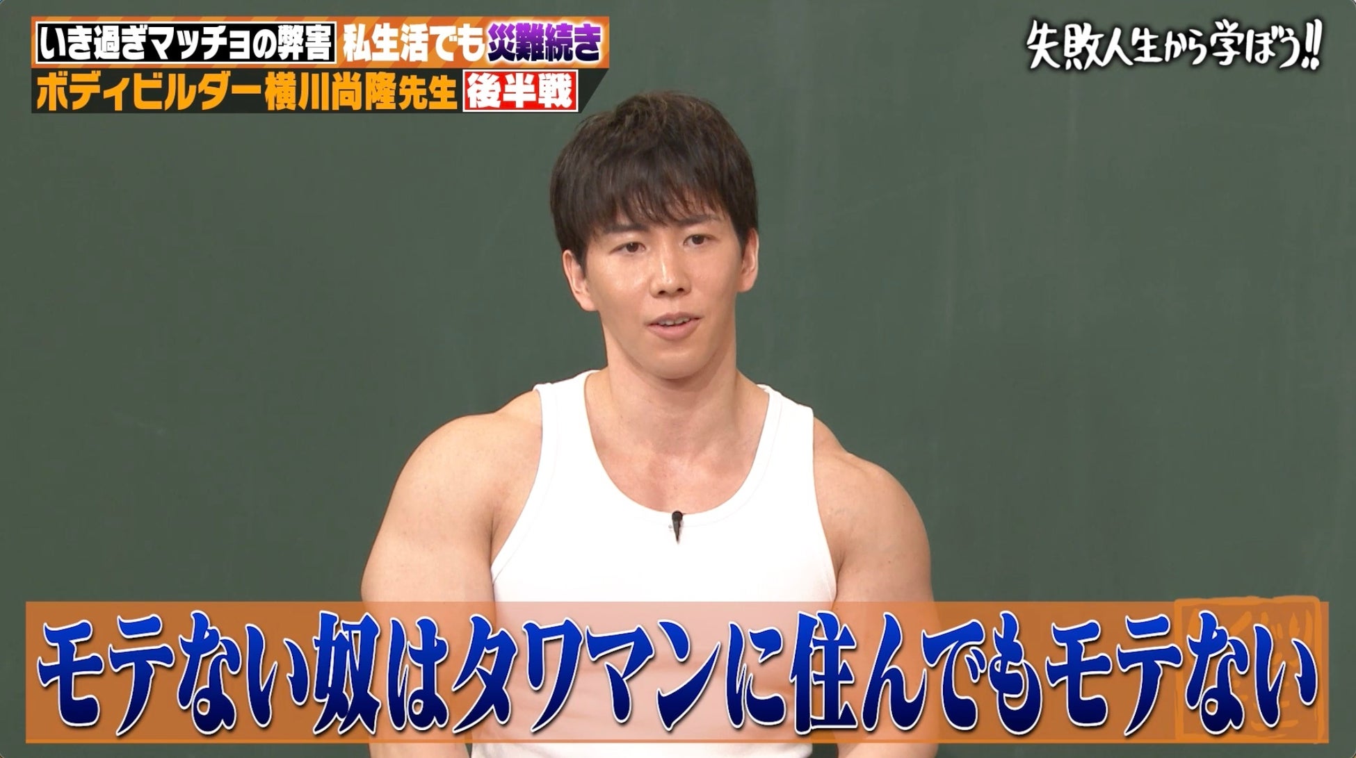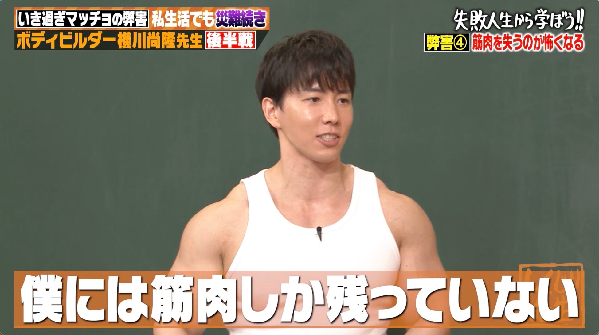 ボディビルダー・横川尚隆が大反省、モテるためにタワマンに引っ越すも…“借金600万円”すべてを失い実家生活/“筋肉を失う恐怖”にとらわれた横川先生のまさかの行動に一同困惑…!『しくじり先生』
