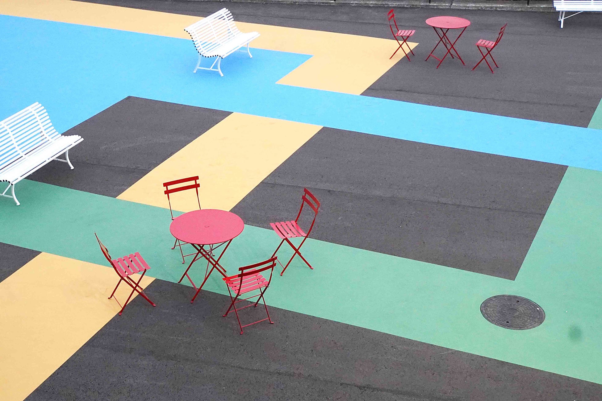 新日本電工eng創造スクエアは、本校の7号館北側に新たに整備された屋外広場です。学生が集まり、交流し、学生企画やイベントなどに活用される場として整備しています。名称に含まれる「eng(えんじ)」は、engineering(工学)および engineer(技術者)を表すとともに、本校のスクールカラーである「えんじ色」にも通じています。