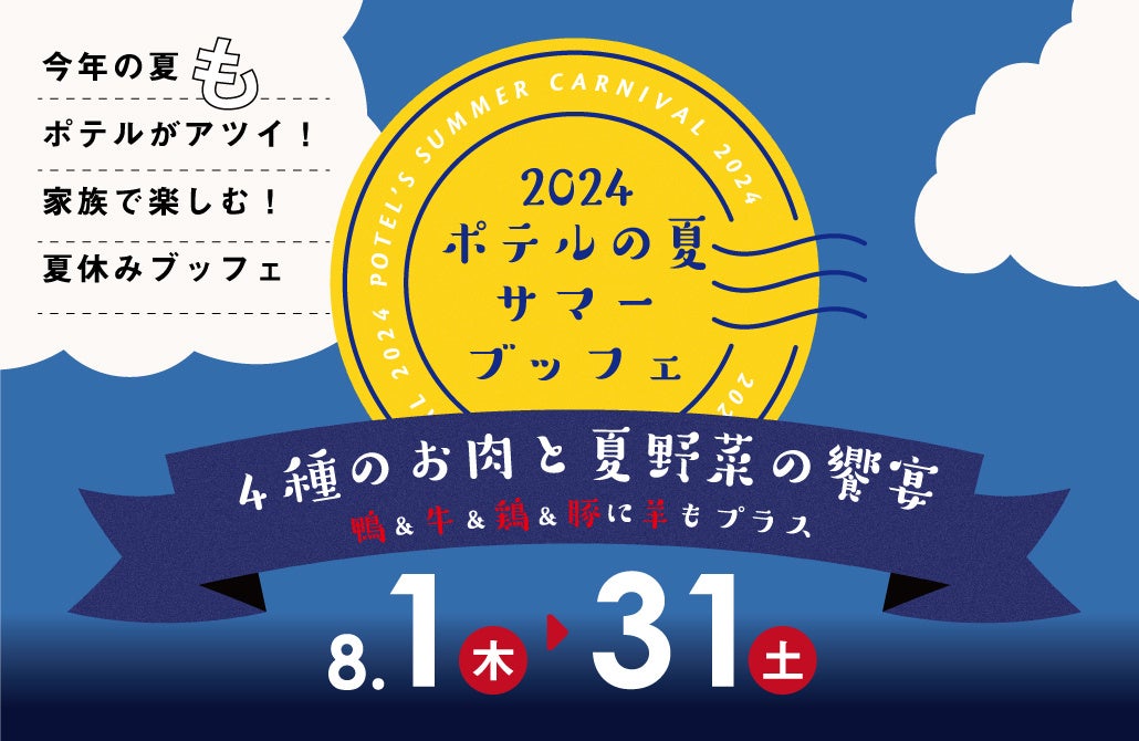 今年の夏<も>ご家族みんなで楽しめるPotel’s SUMMER CARNIVAL~4種のお肉と夏野菜の饗宴~をお楽しみください。