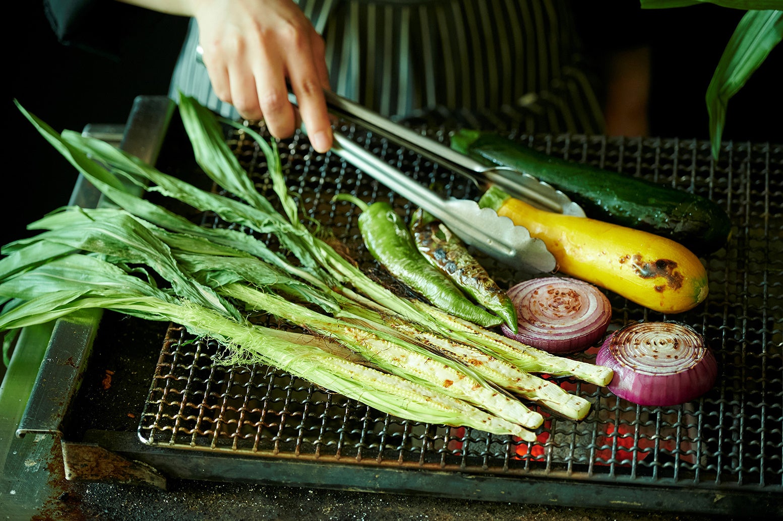 さらに、「坂ノ途中」さんの夏野菜を炭焼きグリルやフライなどで食べていだけます。