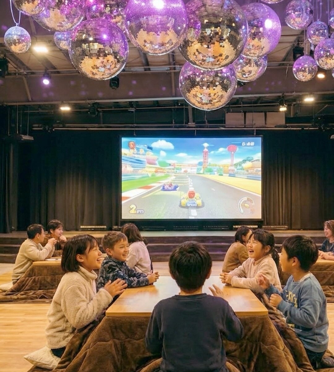ボードゲームや大画面Switchで、子どもから大人まで楽しめます。