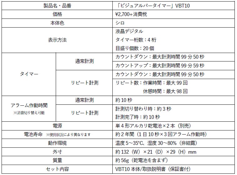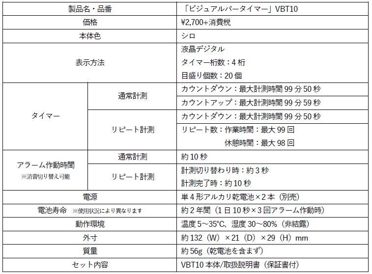 製品名・品番:「ビジュアルバータイマー」VBT10