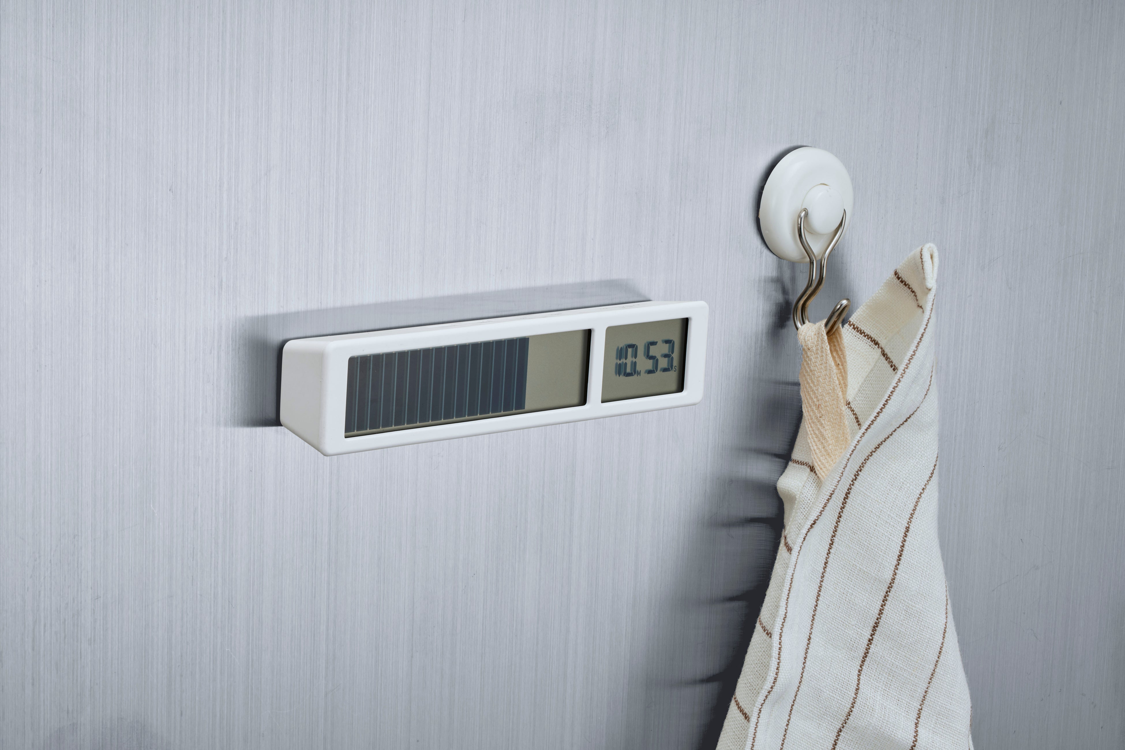本体はシンプルな色合いと手のひらサイズのミニマルなデザインが特長で、背面にはシリコンカバー付きのマグネットを搭載しているので、キッチン周りや鉄製の壁に貼り付けて使用することもできます。