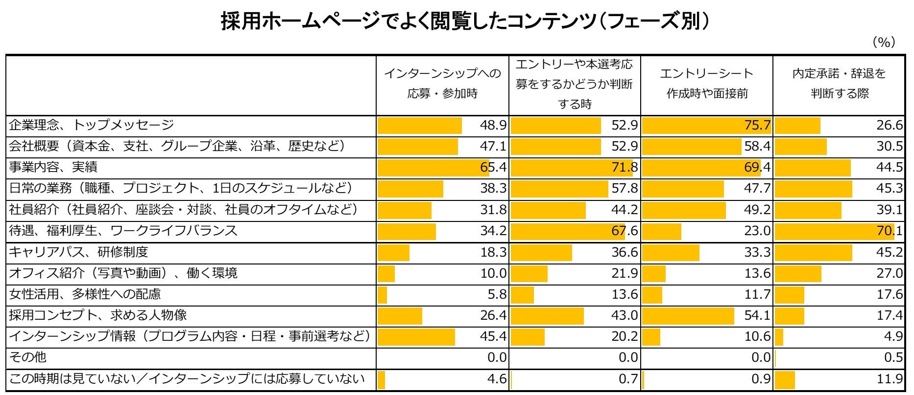 ▼採用ホームページでよく閲覧したコンテンツ(フェーズ別)