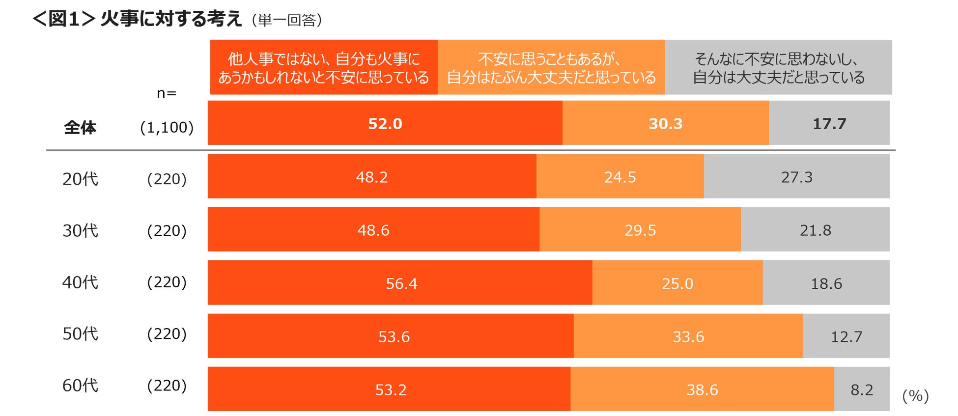 「他人事ではない、自分も火事にあうかもしれないと不安に思っている」人は52.0%。