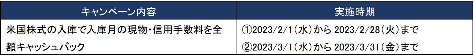 ■米国株式入庫で米株現物・信用手数料 全額キャッシュバックキャンペーン