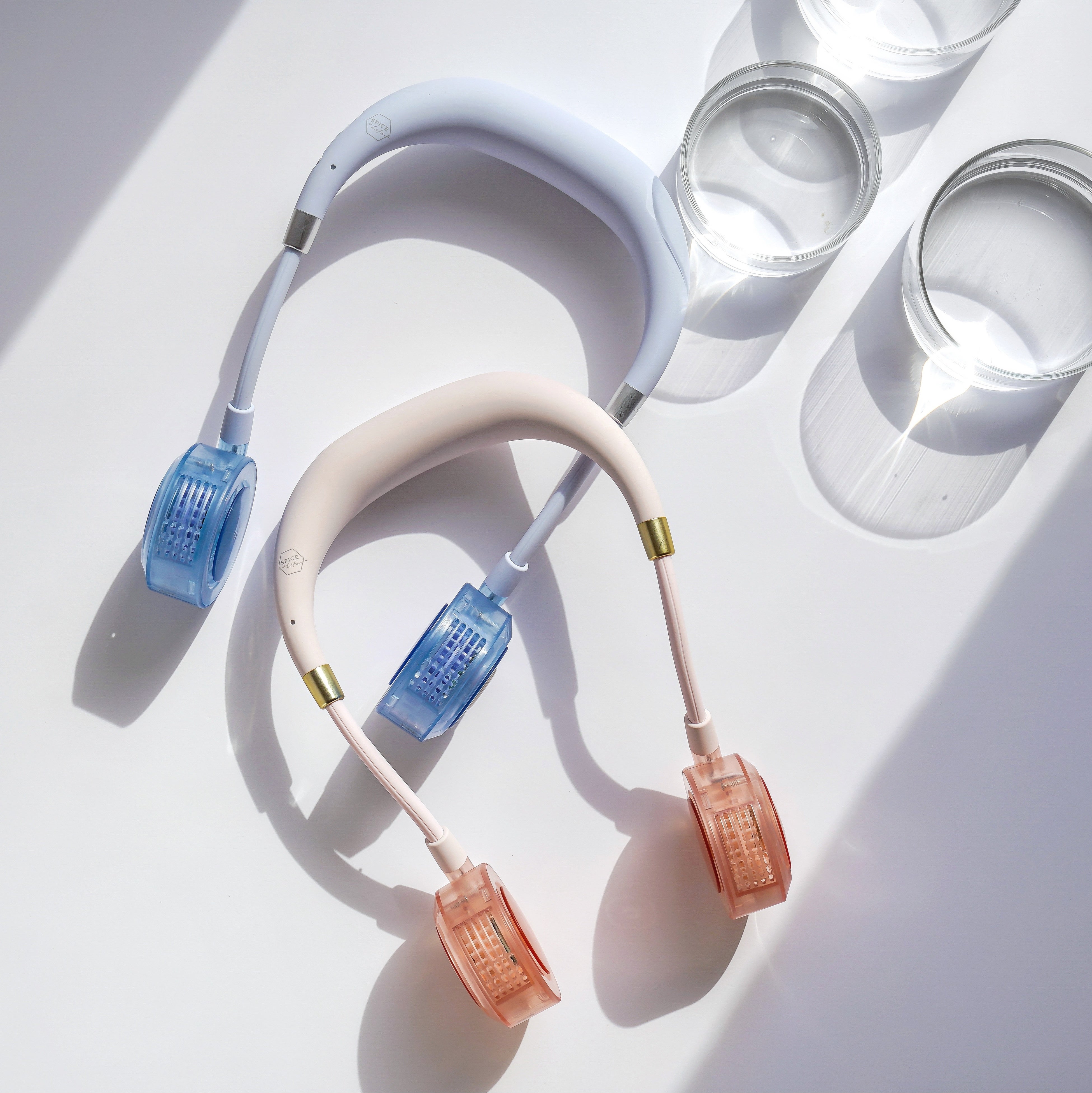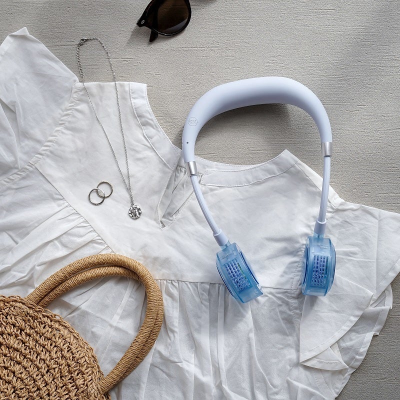 ◆まるでヘッドフォン!?手に持たず、機能性とファッション性を兼ね備えた首掛け扇風機