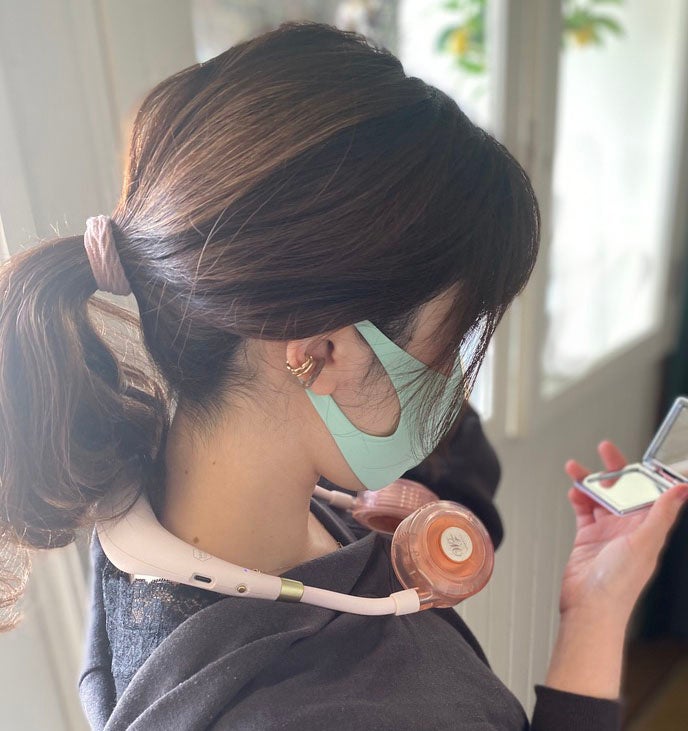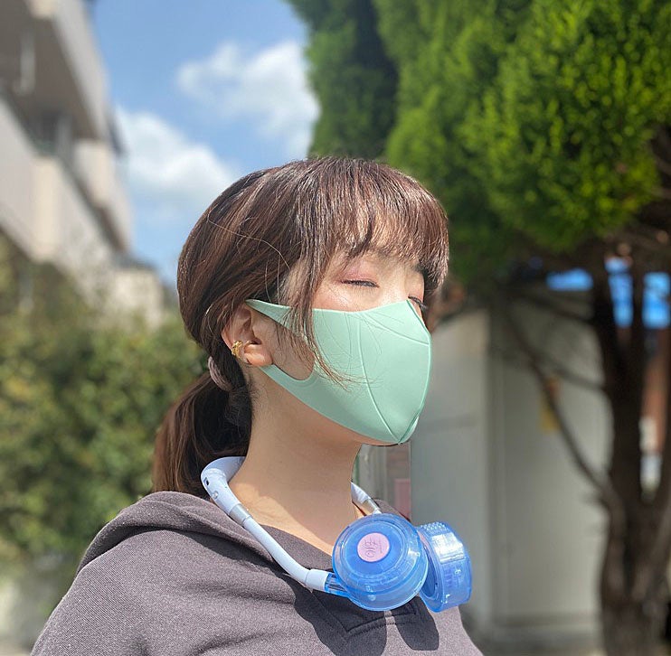 ・熱中症や酸欠のリスクもある夏のマスク。風をあてることで、口元の温度が下がり呼吸しやすく快適に過ごせます。