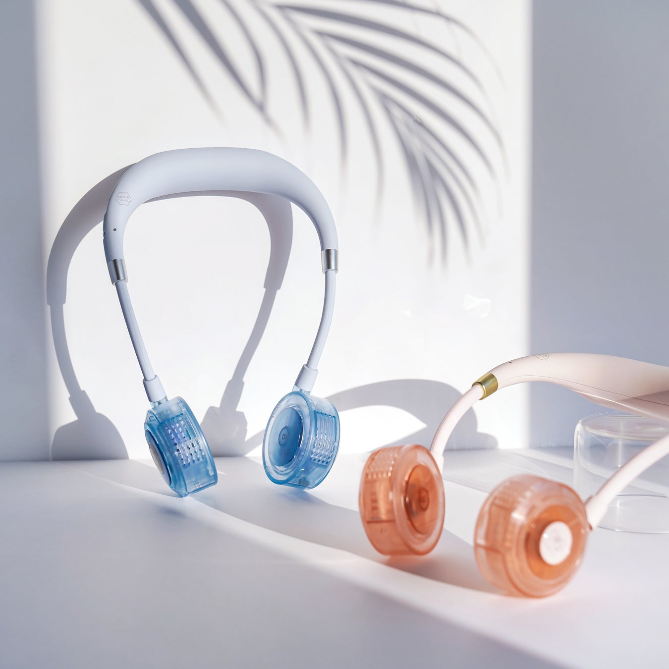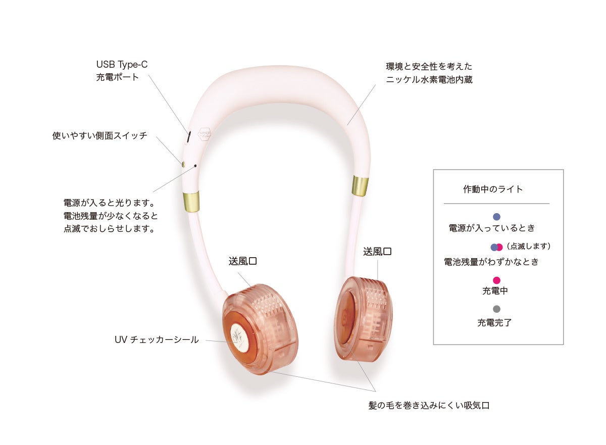 ヘッドフォンみたいで可愛い!/手が自由で快適、もう手放せない!/ホットフラッシュ対策に便利/マスク蒸れが気にならなくなった/ガーデニングに公園遊びに大活躍!
