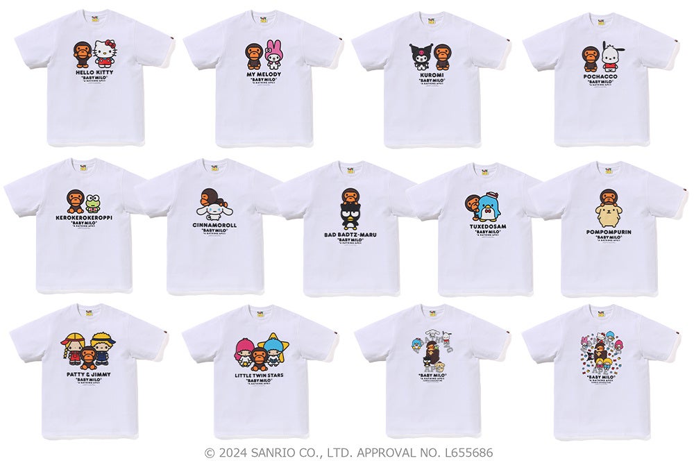 A BATHING APE®︎(ア ベイシング エイプ®以下、BAPE®︎)のマスコットキャラクター「BABY MILO®︎(ベイビーマイロ®)」の25周年を祝して、株式会社サンリオのキャラクターたちとのコラボレートコレクションを発売します。