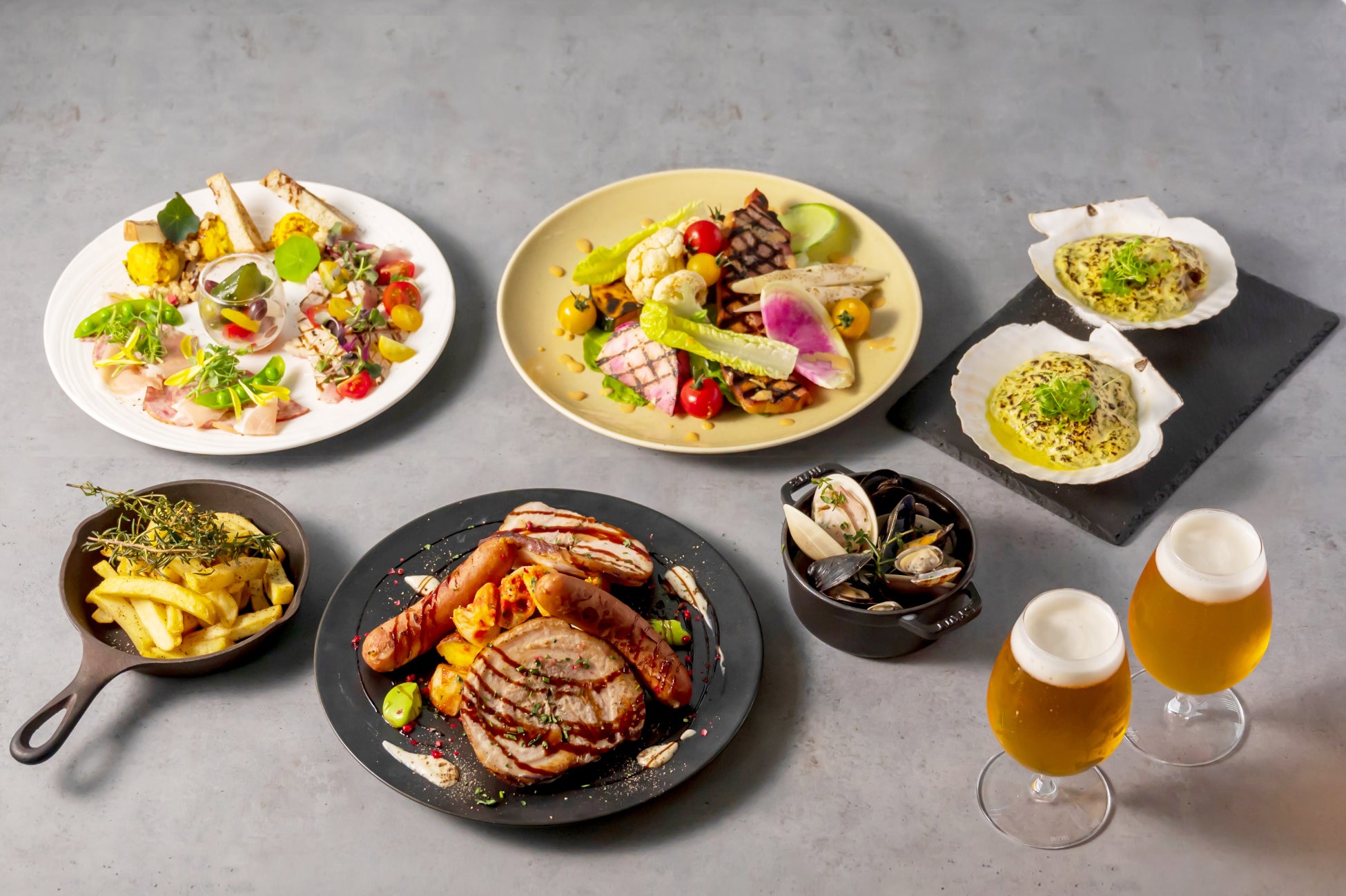 プラチナ通り沿いの心地よい風が抜けるテラスにて、スパイスがきいた南米テイストのもち豚のローストと鶏ソテーがメインのビールと相性抜群なBBQスタイルの料理と、種類豊富なドリンクメニューで大人のビアテラスをお楽しみいただけます。
