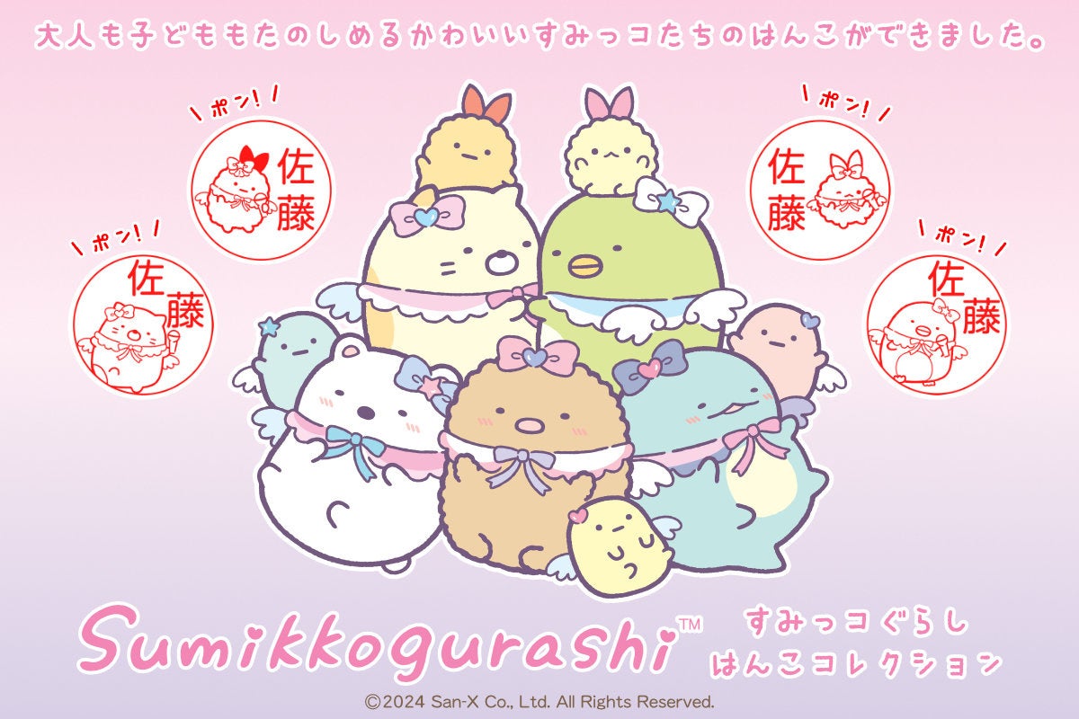 8月に登場したすみっコぐらしの新テーマ「天使なえびてんアイドル」より、「えびてんのしっぽ」を含む8種類が新たに登場した「すみっコぐらし はんこコレクション」。